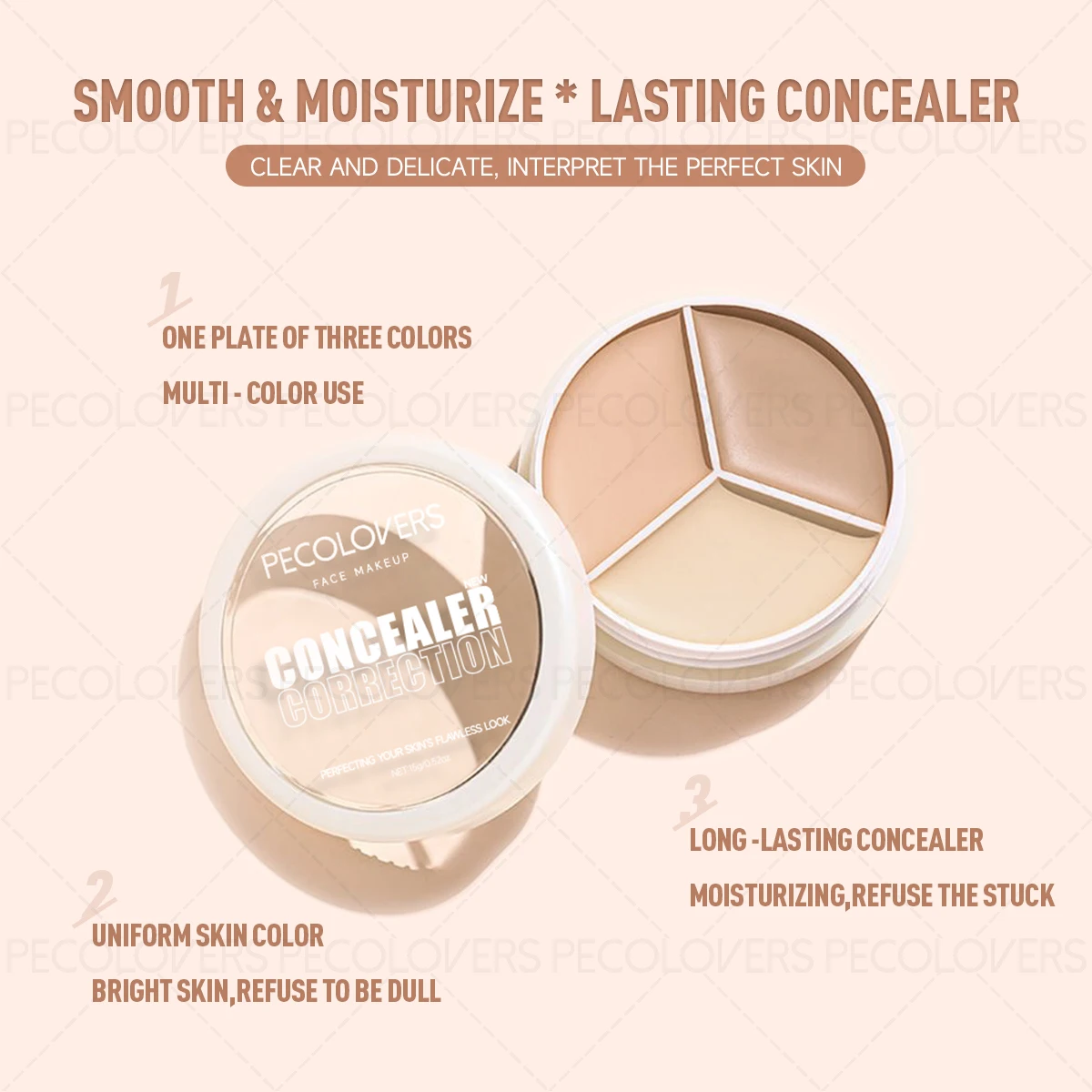 1 Pcs 3 Shades Full Coverage Concealer, Waterproof Long-lasting Matte Finsh for All Skins, Cover Flaw Natural Concealer Makeup