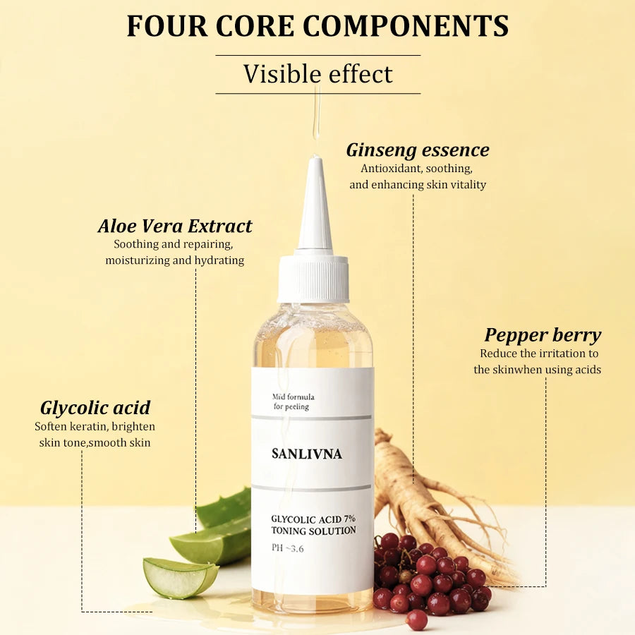 Glycolic Acid 7% Exfoliating Toner Daily Use Brightening Smoothing Toner for Even Skin Tone Facial Skin Care Product